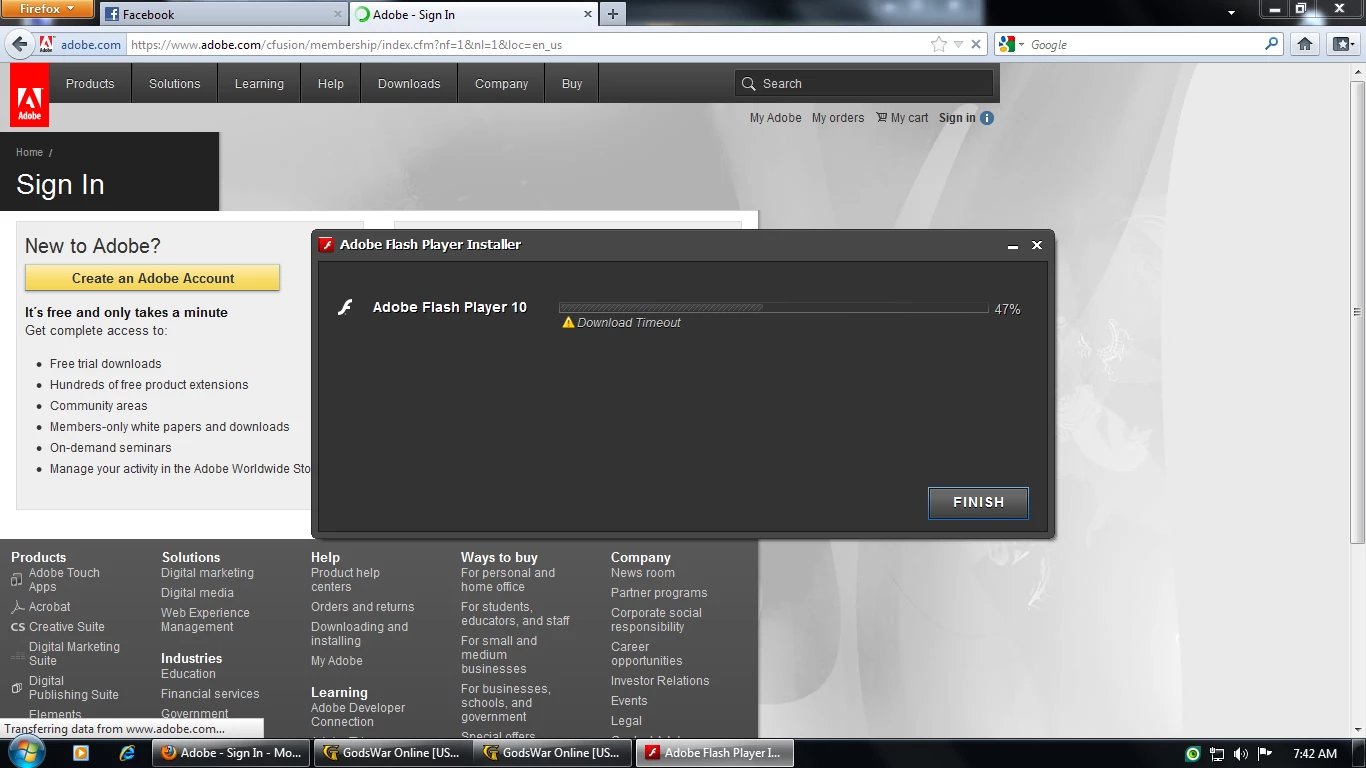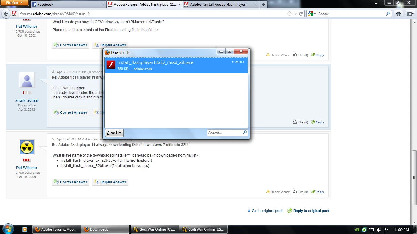 Adobe flash player 11 always downloading failed in windows 7 ultimate 32bit