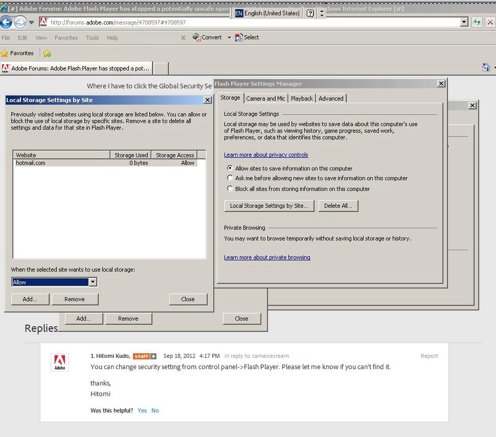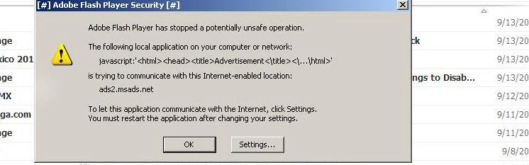 Adobe Flash Player has stopped a potentially unsafe operation @ Hotmai.com Sandboxed