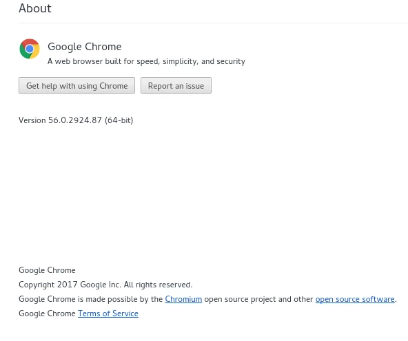 Browser is Chrome, version: 56.0.2924.87 (64-bit)