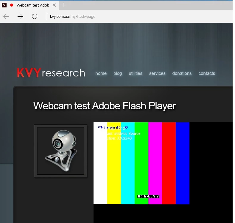 - Load my test page with Flash Player - Webcam test Adobe Flash Player | Victor Kulichkin's personal website