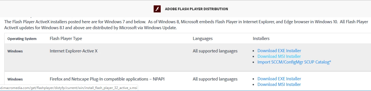 Can't download Active-X .msi installer https://www.adobe.com/products/flashplayer/distribution5.html