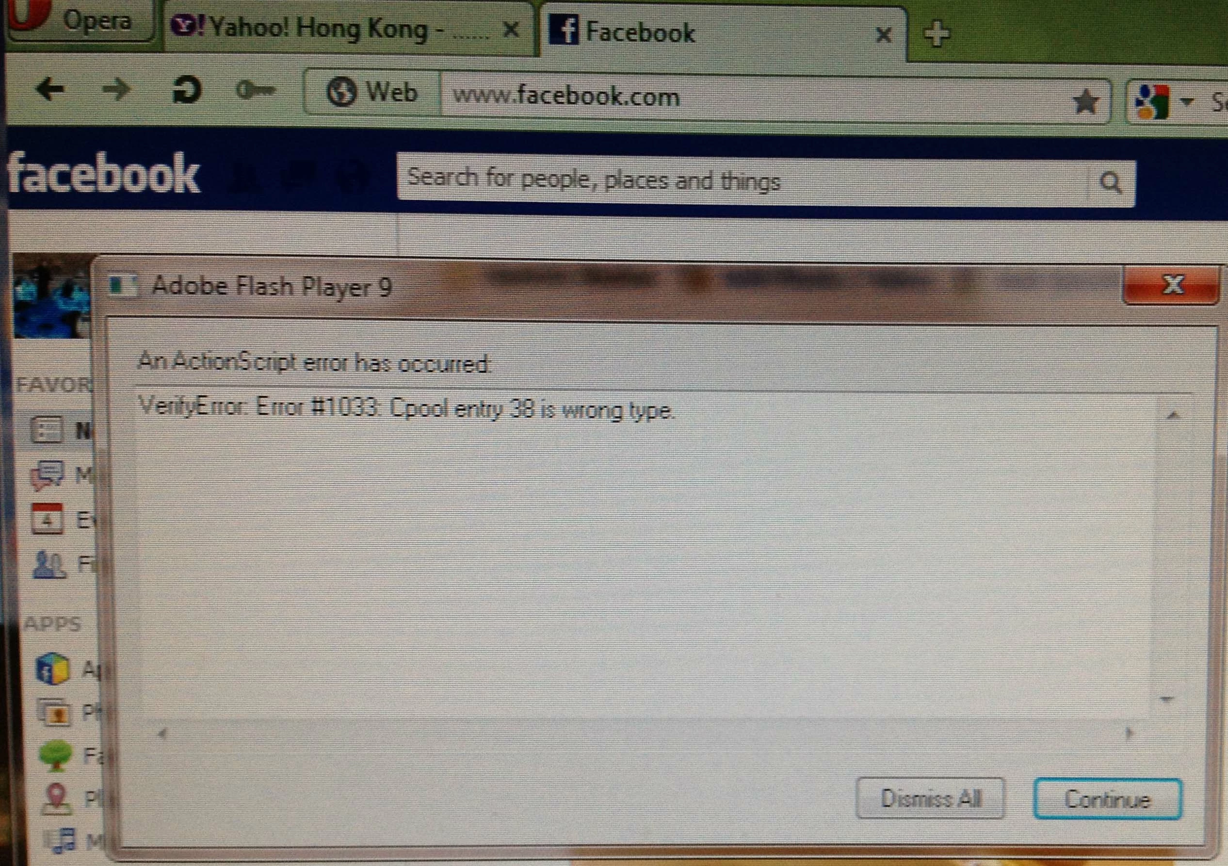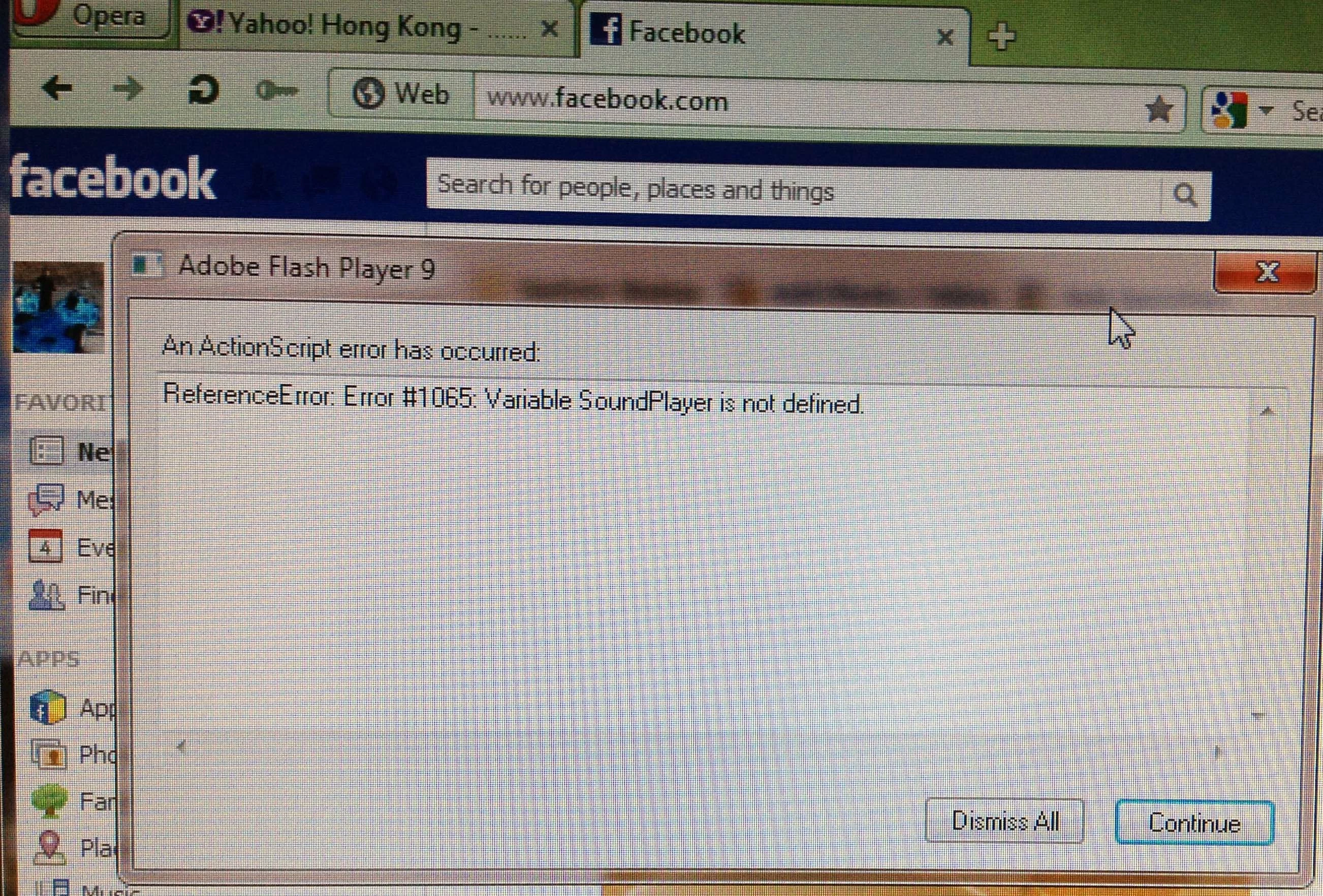 When using facebook in Opera, the following error messages kept popping up: