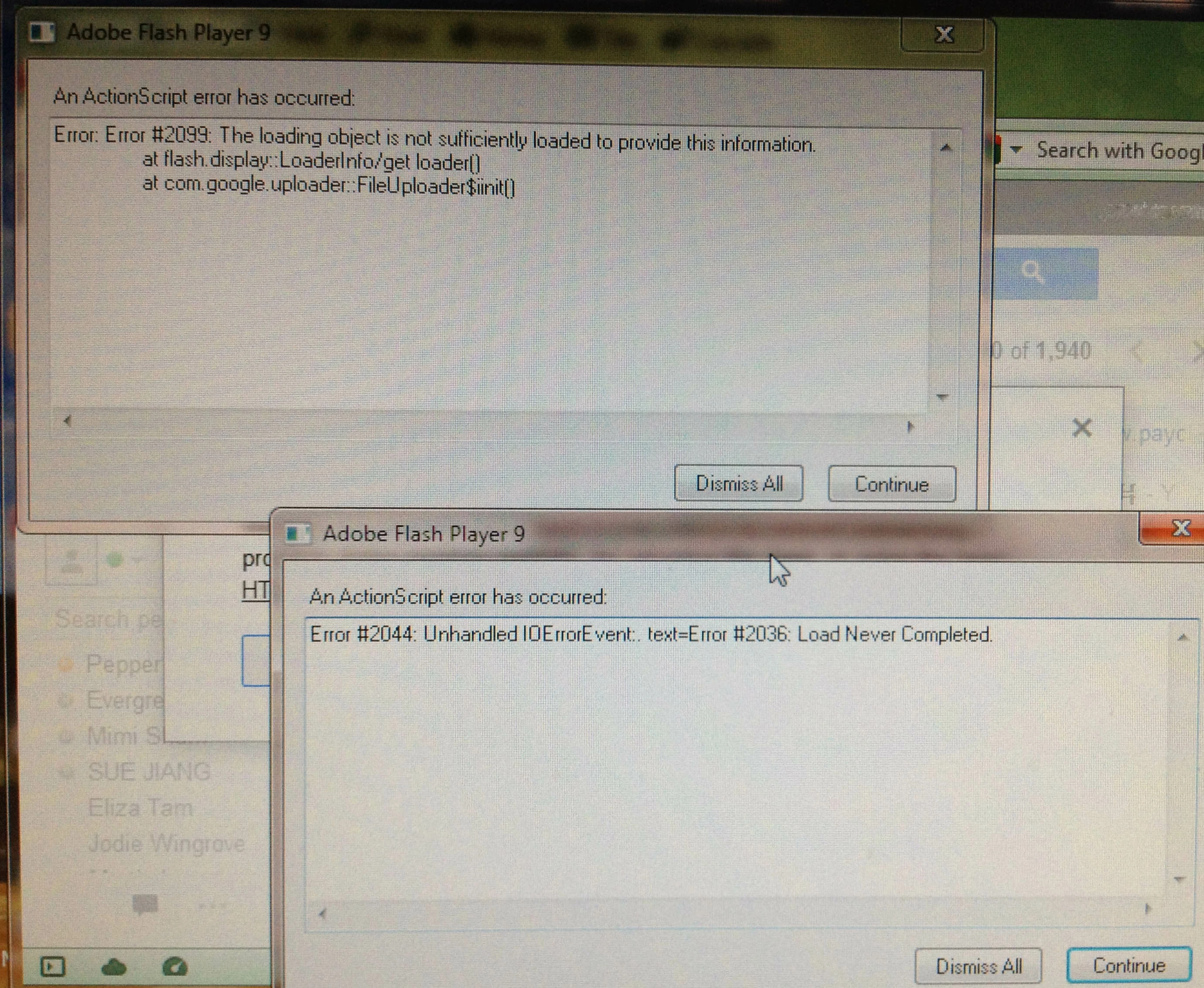 Error: Error#2099: The loading object is not sufficiently loaded to provide this information at flash. display::LoaderInfo/get loader[] at com.google.uploader..FailUploader$init[]