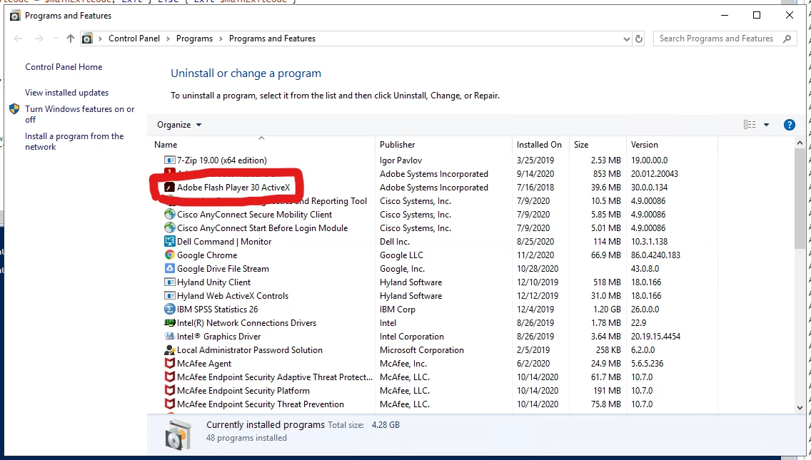 Can't uninstall Flash Player ActiveX on machines that were upgraded from Windows 7 to 10