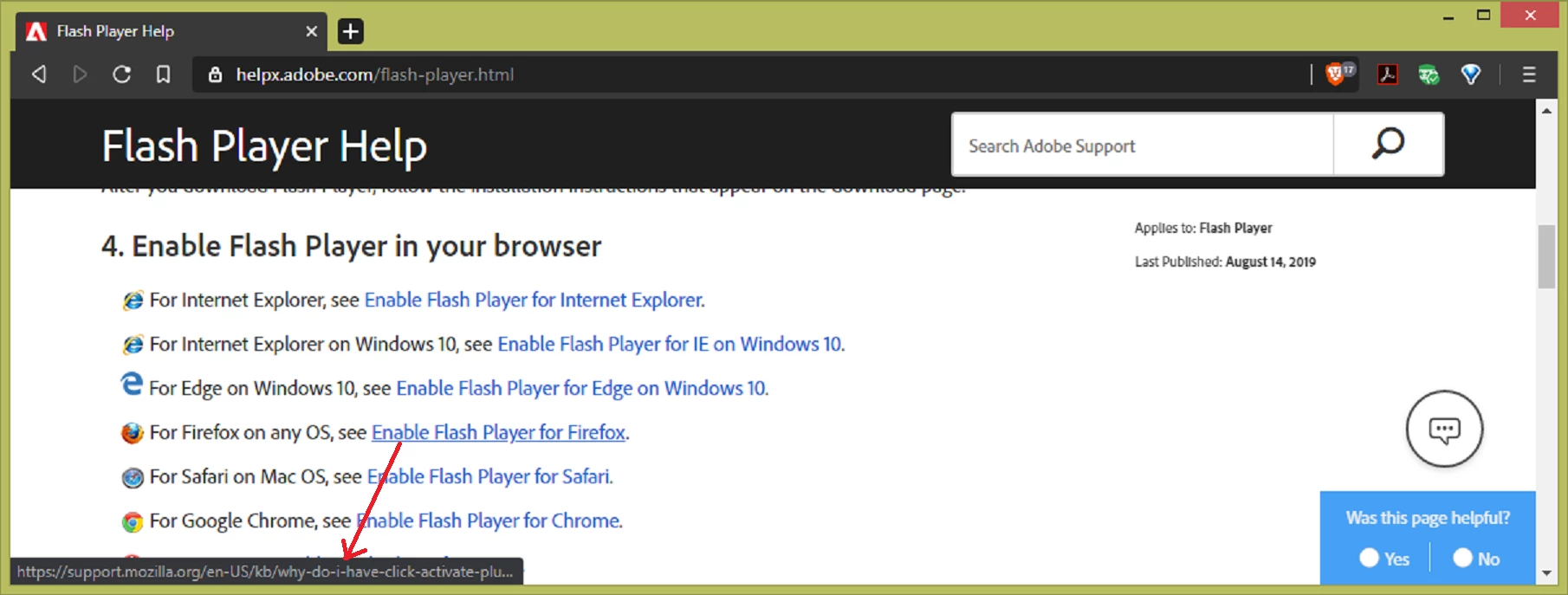 The last update for the link https://helpx.adobe.com/es/flash-player/kb/enabling-flash-player-firefox.html was on March 2017. It is useless now.
