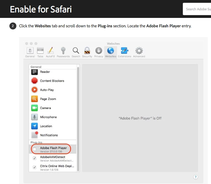 The last update for the link https://helpx.adobe.com/es/flash-player/kb/enabling-flash-player-safari.html was on November 2017. It is useless now.