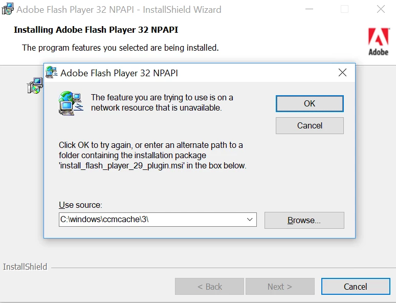 But during the deployment it is asking for install_flash_player_29_plugin.msi??
