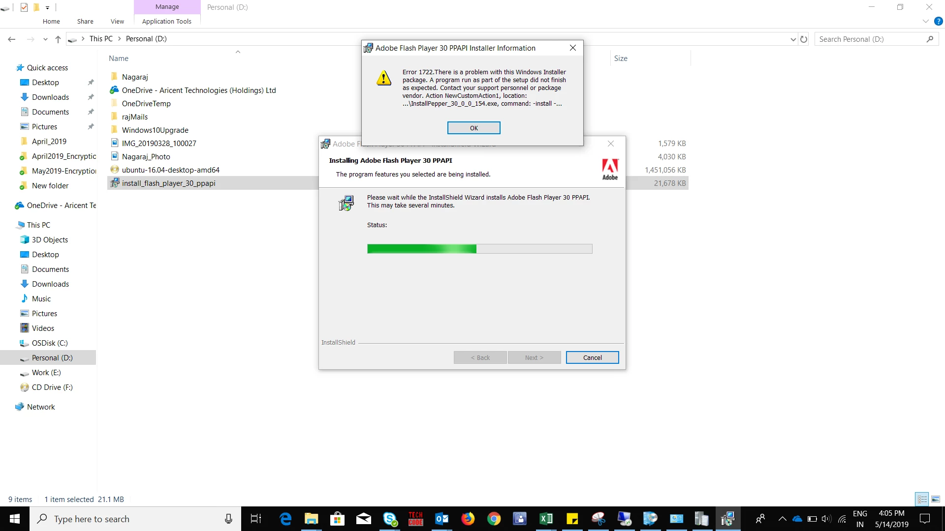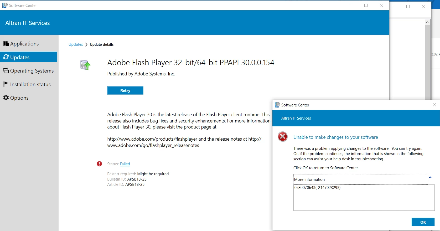 Error 0x80070643 while installing adobe flash player 32-bit/64-bit ppapi 30.0.0.154 via SCCM