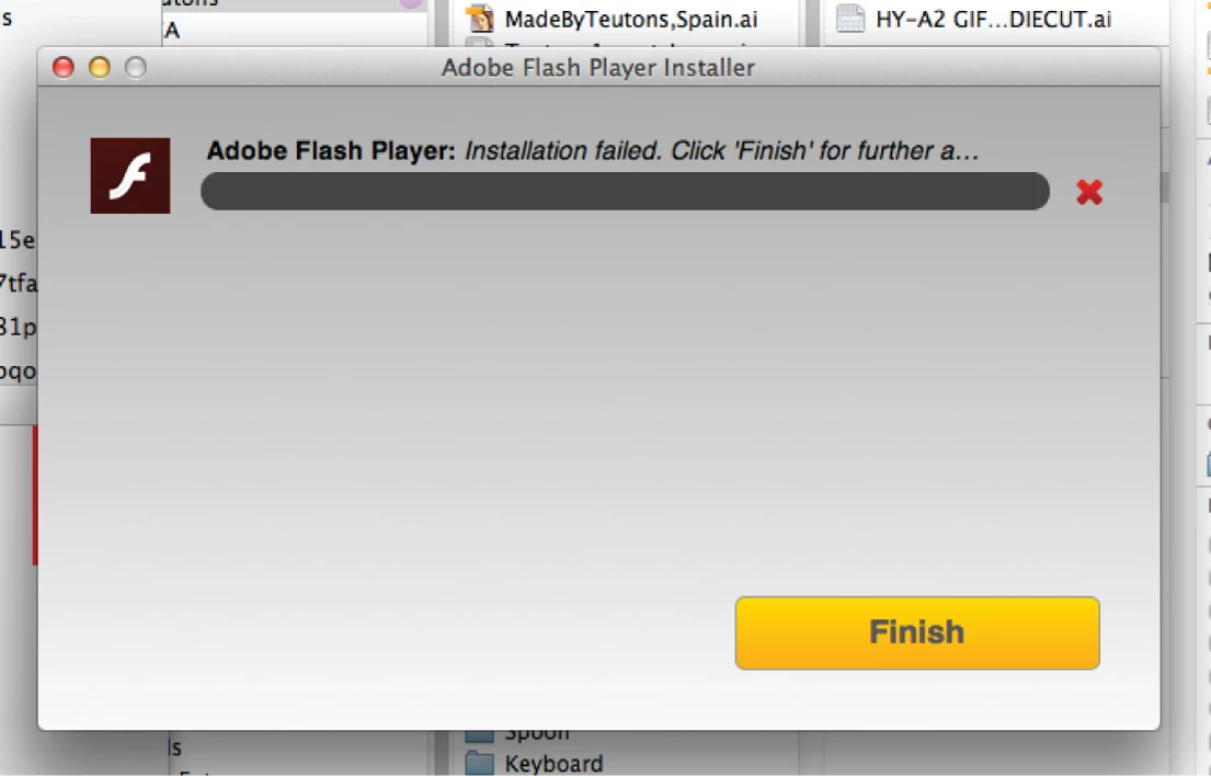 After 60% instalation it's shown an errer like below image. so what can i do for updating my flash player?