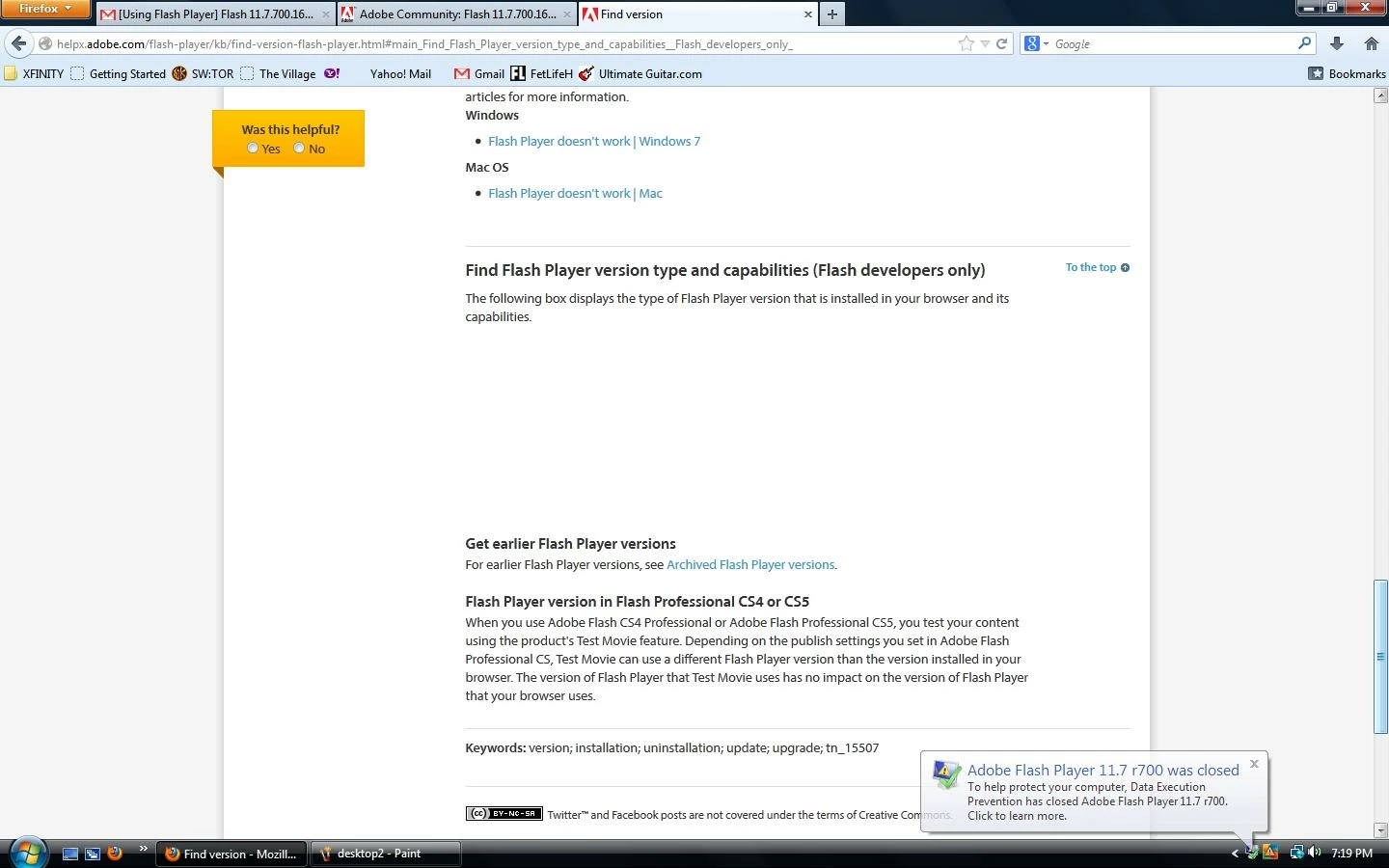 Flash 11.7.700.169: "Adobe Flash Player 11.7 r700 has stopped working"