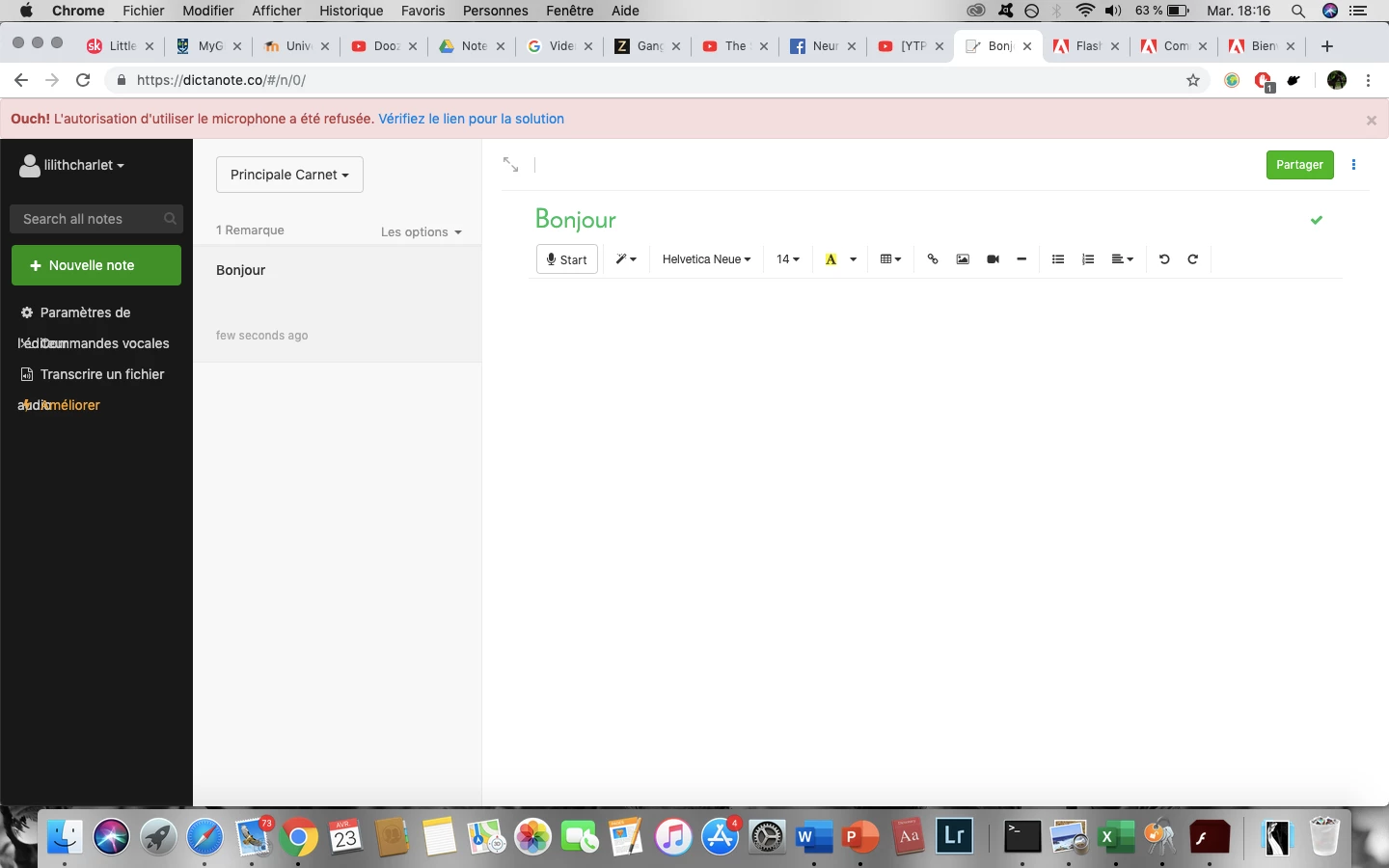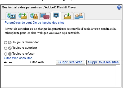 4. I tried to go on Flash Settings, but no website appear on my list, and no authorization is asked when I try to use the mic.