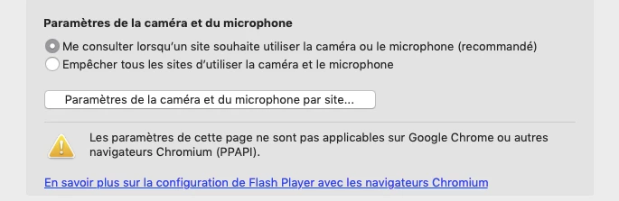 1. I have activated my mic AND flash on the website (cf. pic)