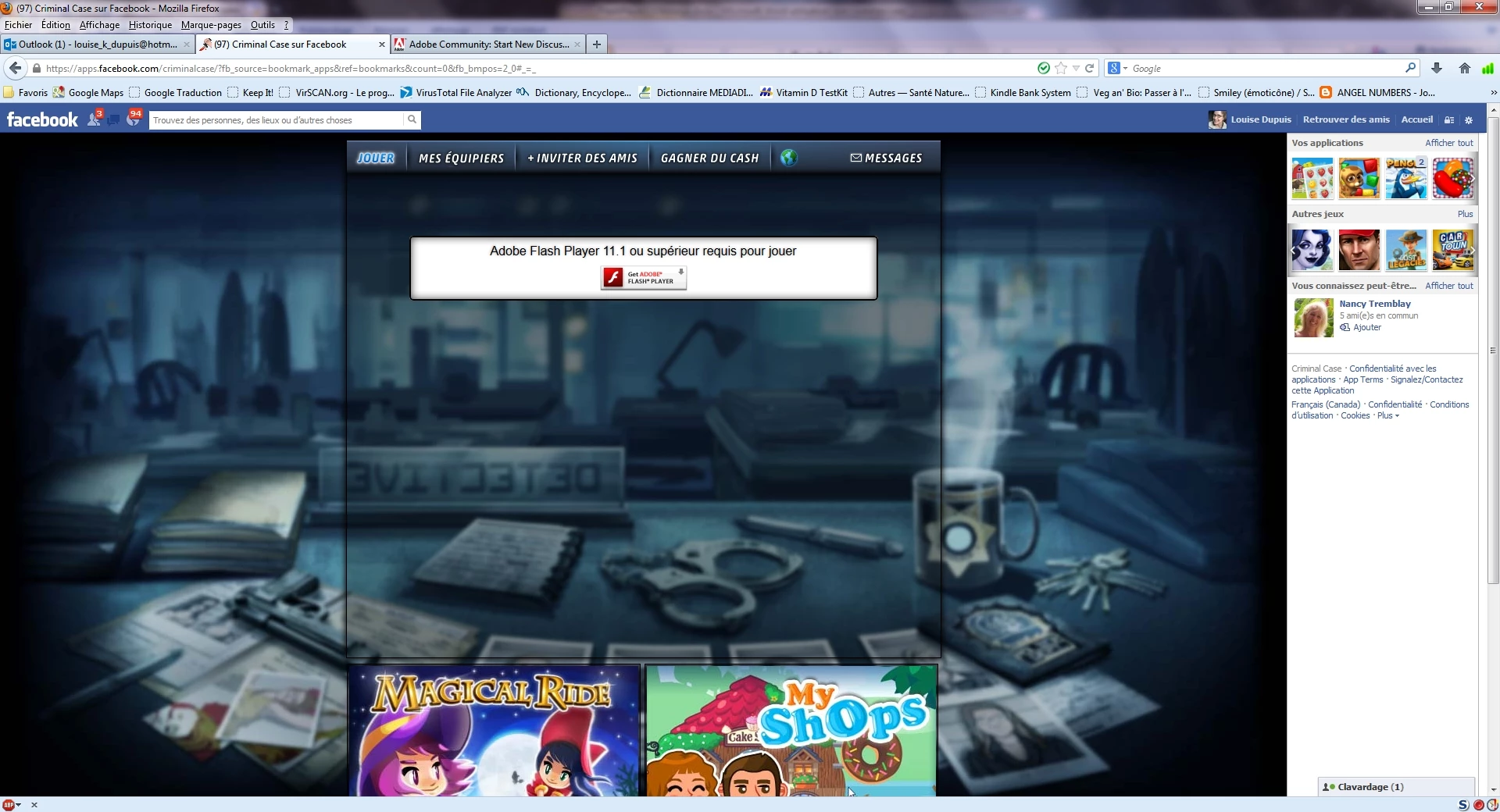I just updated Firefox to the 22.0 version and then updated Flash Player to the above version, but when trying to play videos or games in Facebook, I get the message "Adobe Flash Player 11.1 or higher required for playing".