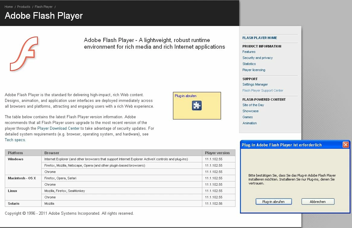 Flash Player 11 time out at 12 seconds - German notifications