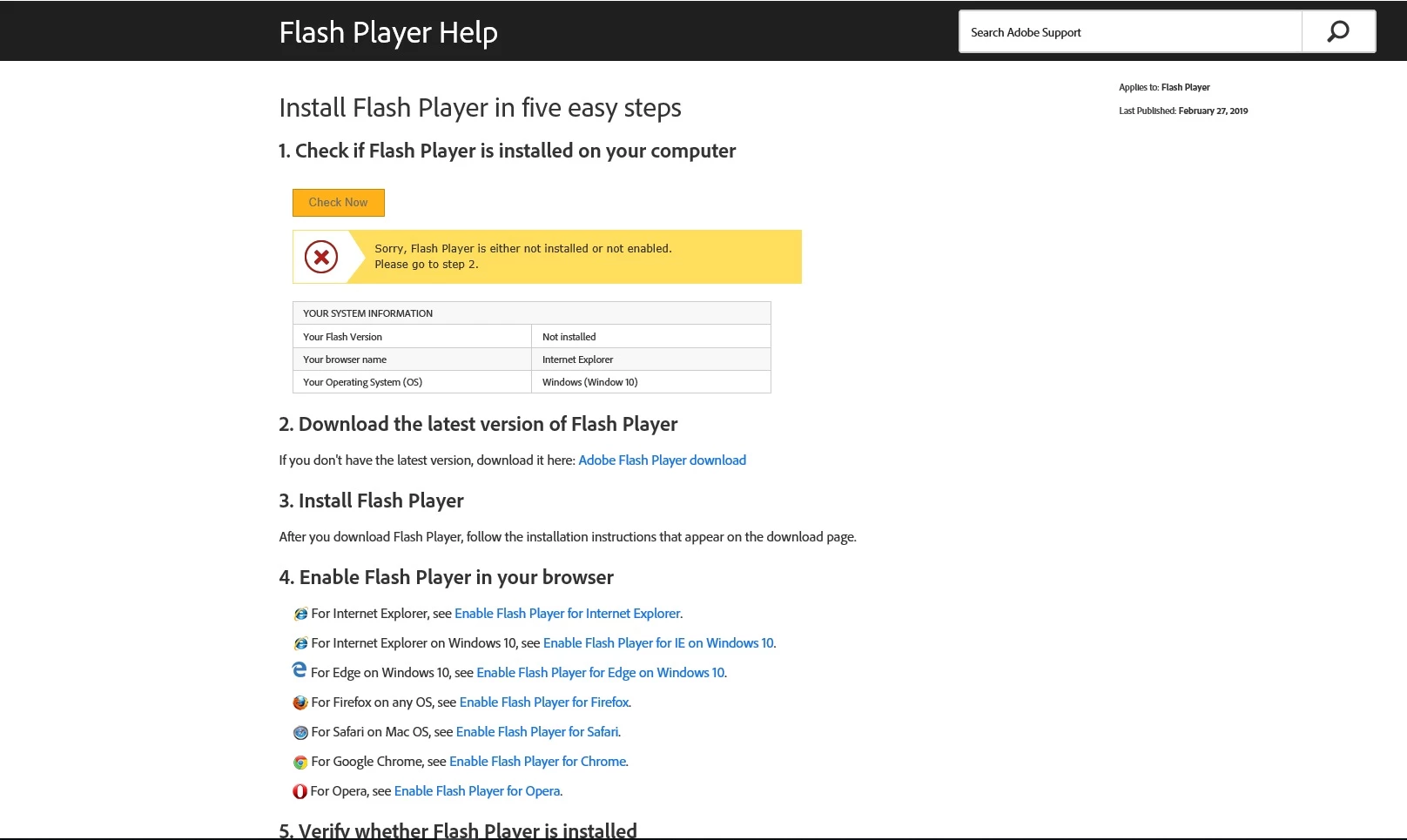 - Open the page that has the rich media content in Internet Explorer. For example, visit Flash Player Help.