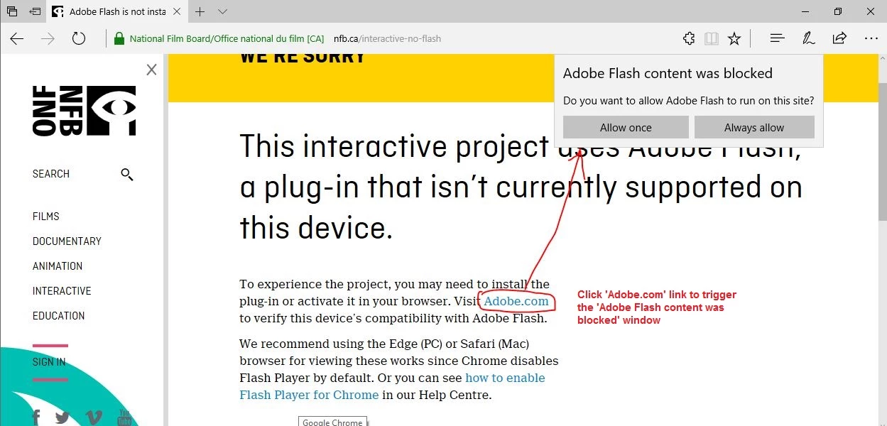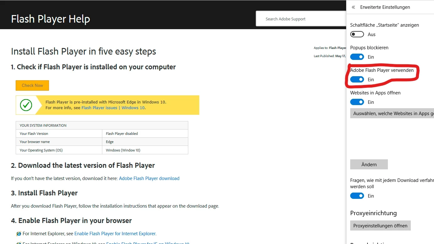 Flash Player doesn't work - Windows 10 - Microsoft Edge