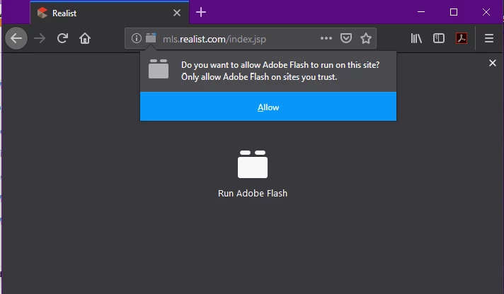 "This Firefox issue with Realist is a known problem related to the latest version of the Firefox browser. Many websites and browsers are moving away from supporting Adobe Flash and are updating accordingly. Realist still requires Adobe Flash to run and we have started seeing more problems with it in some browsers. It appears Realist and the latest Firefox version are incompatible. I am unsure if future Firefox updates might work again but it seems unlikely if the browser no longer works with Flash websites. "