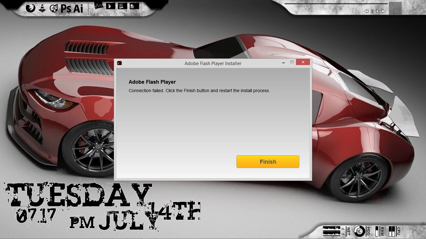 I have tried to install Adobe Flash Player probably 6 or 7 times now and the same problem keeps occurring. When I download the exe "flashplayer18_ha_install" and run it, the popup installer says "Connection Failed. Click the Finish Button to restart the download process."