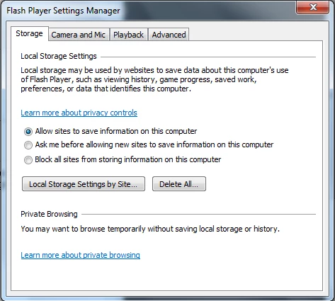 Though I have installed Adobe Flash Player but it is not shown in the list. When I go to Start --> search bar (type Flash Player), I can see a Flash Player item in the list which is a "Flash Player Settings Manager" dialogue box: