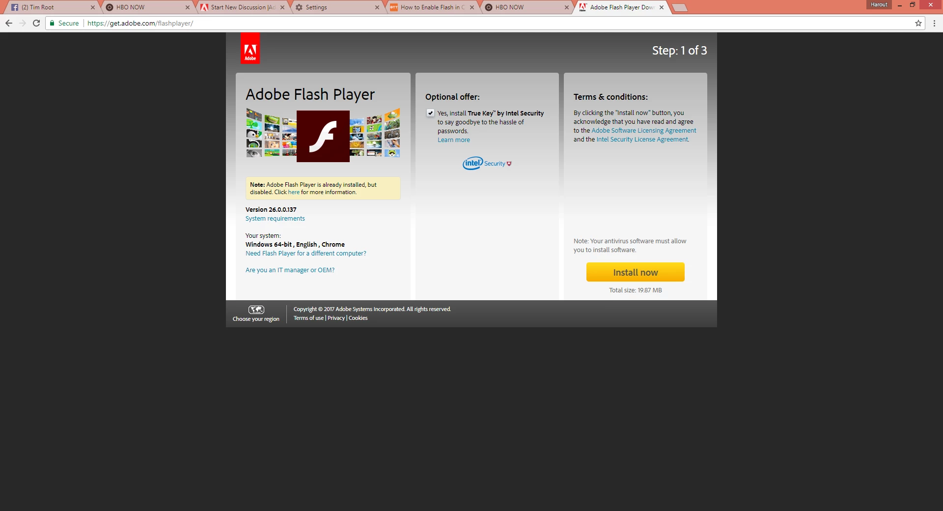 Flash player issues with HBO NOW