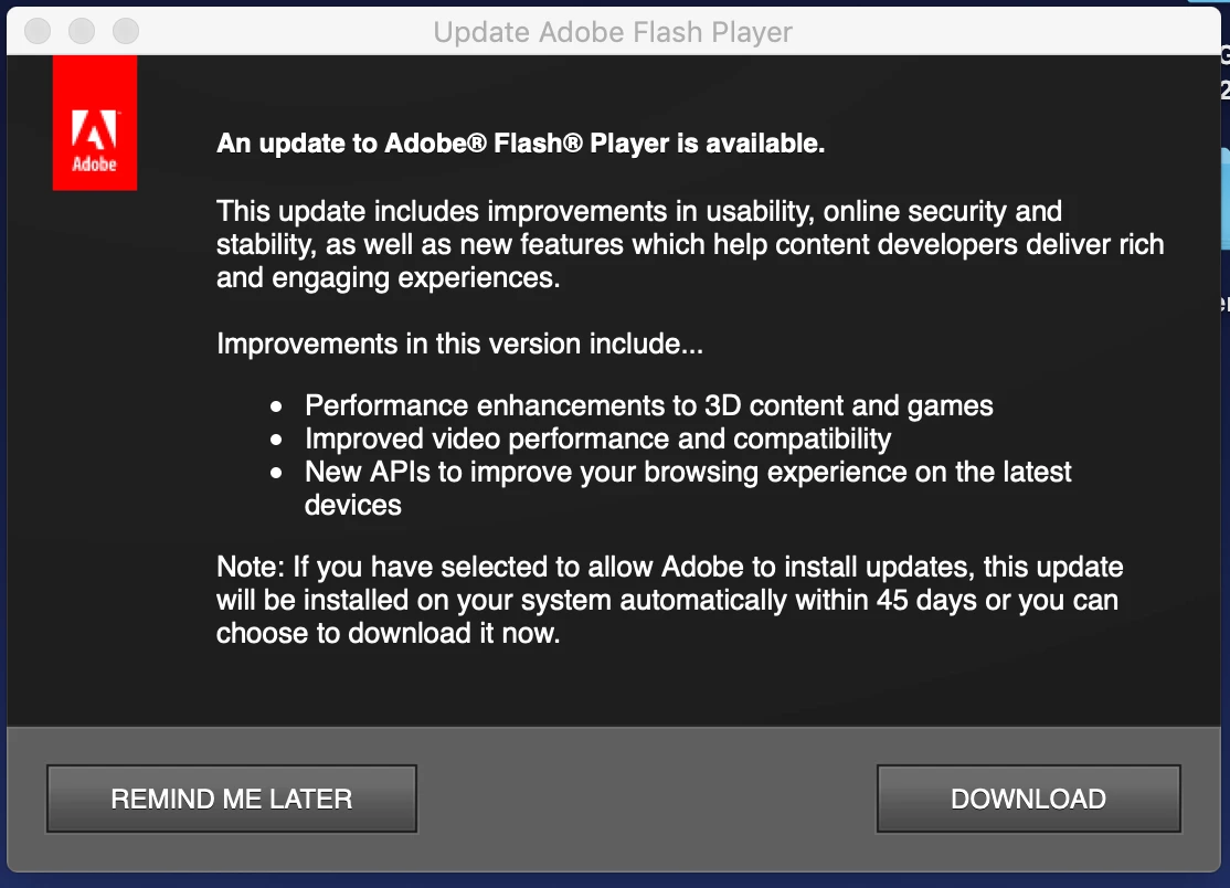I use a MacBook Pro running on MacOS 10.14.2 (Mojave), the Adobe Flash Player asks me to install an update and I do so, the very next day it keeps asking me to again update and does not stop asking until I install again, then even after I install second time it keeps popping up and asking me to update. I have also re-started the browser, that too does not help. Basically it is not storing or recognising the updates.
