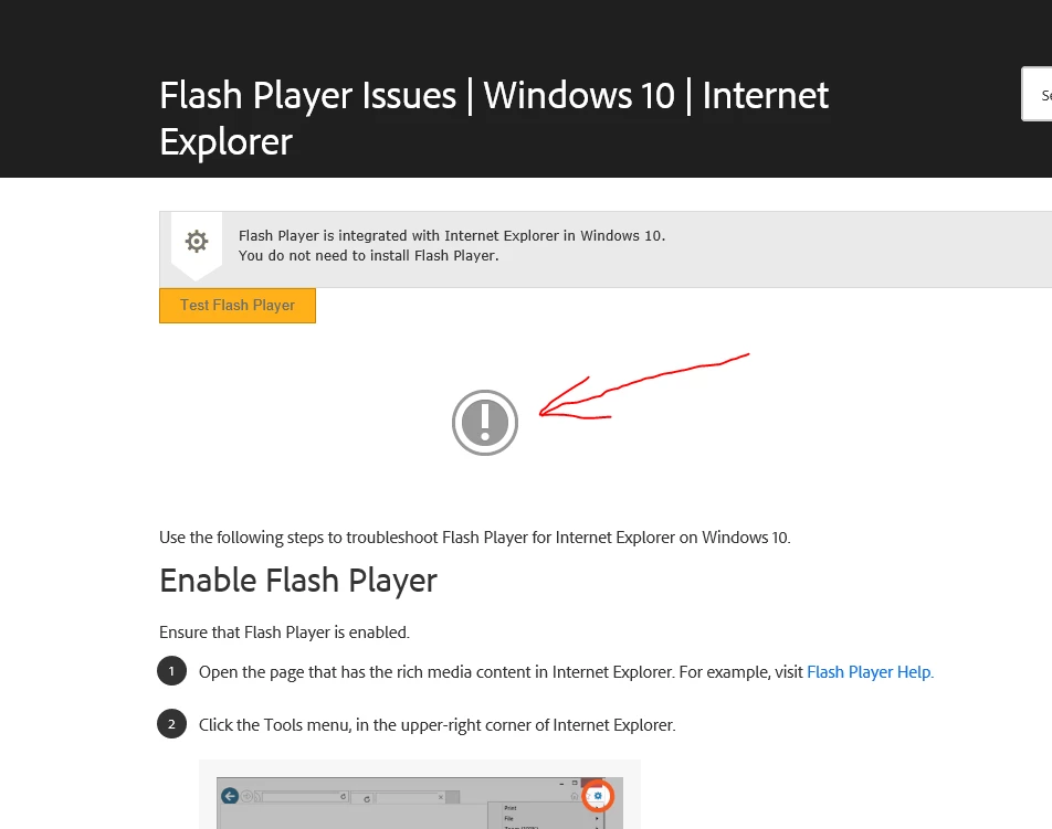 - A direct link to a page that demonstrates the problem: Flash Player Issues | Windows 10 | Internet Explorer