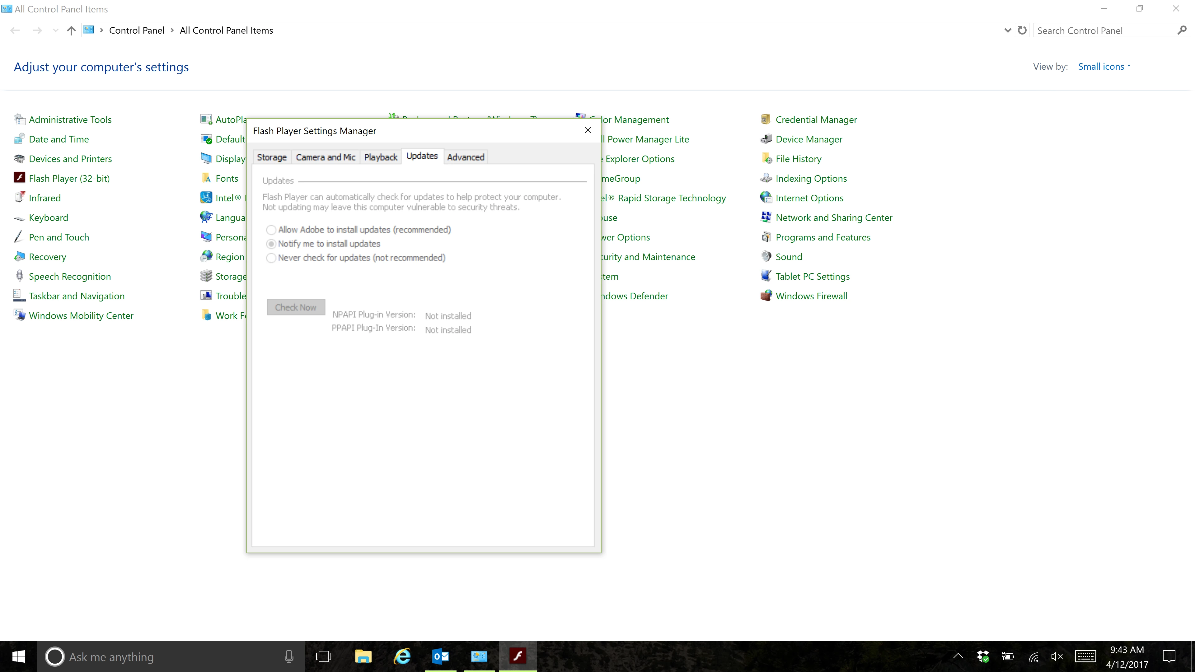 - I receive updates for Flash Player, but when I start to download, file is identified as malicious, so I went to Flash Player app to update tab to change to "allow Adobe to automatically update" as recommended, but screen is grayed out not allowing changes. How can this be fixed?