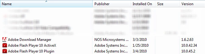 Then i looked in my Windows 7 programs and features to see which version i had because some of the FAQ said to just uninstall the old versions and reinstall. So i went and took a picture of that also: