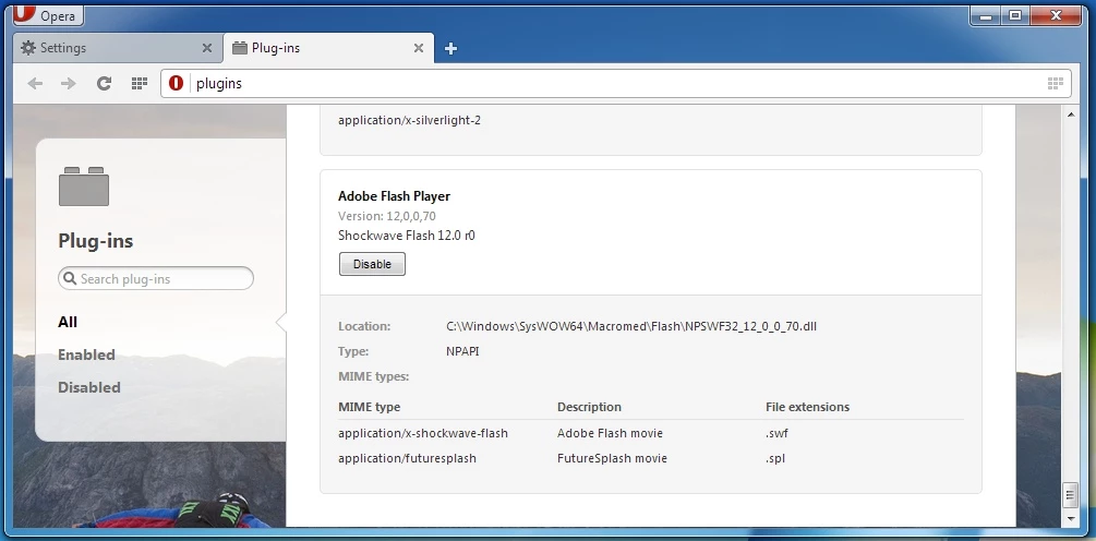 On Firefox Flash Player works fine, I can watch Youtube without a problem. However, on Opera I cannot. It wont detect Flash Player. I've tried installing and uninstalling Flash Player and plugins are already enabled but no luck. Any help, please?