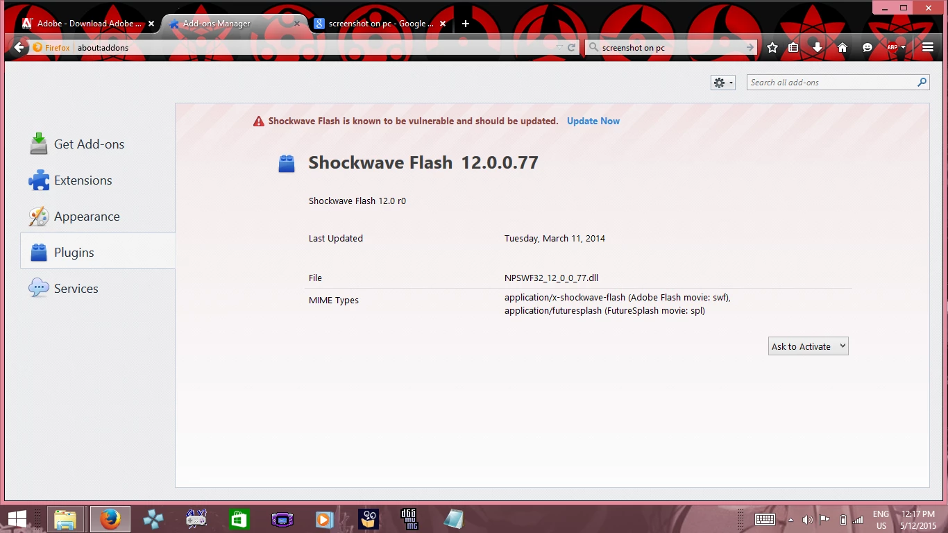 umm i have windows 8.1 and when i install flash player on my compuer it alwals comes with 12.0.77 i have uninstalled flash and reinstalled it today becuse my games says i dont have the latest flash player even tho i have already download it .png)