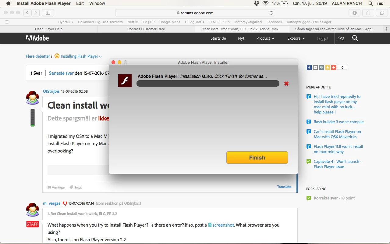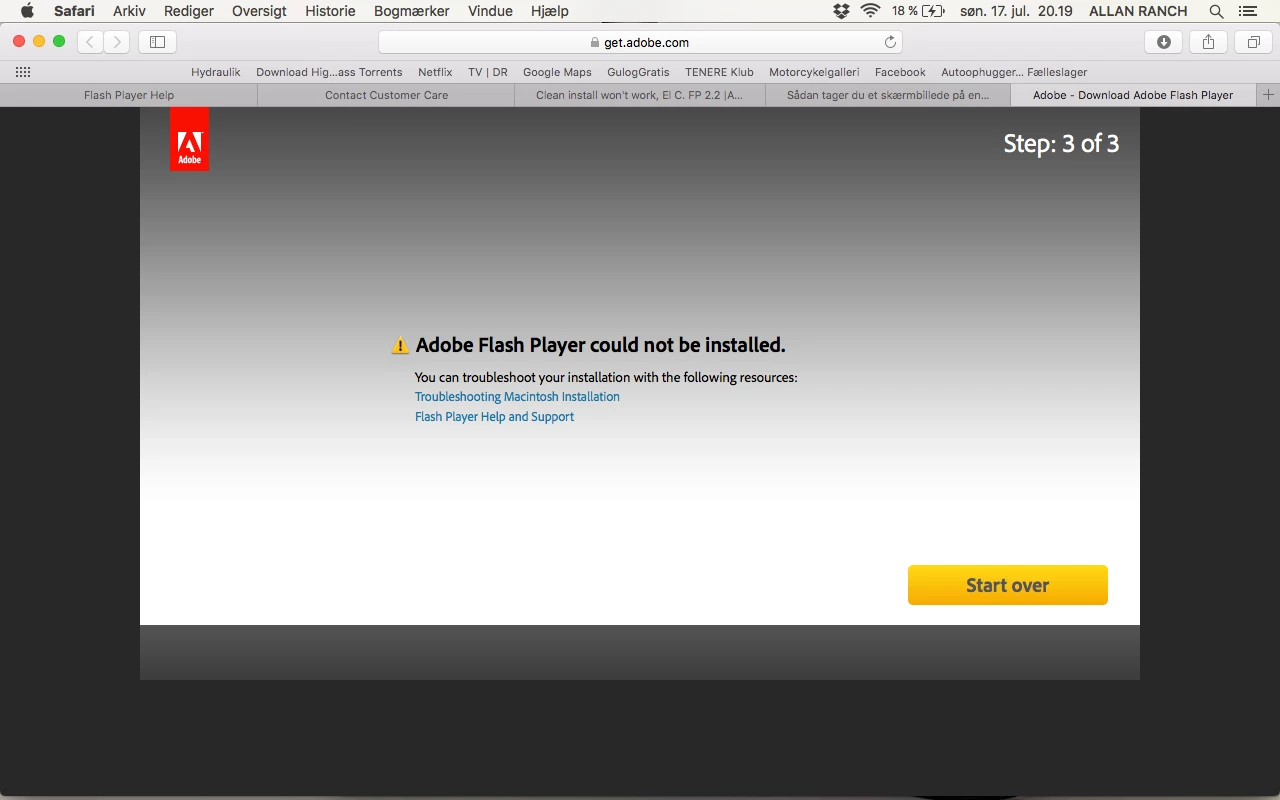 I have also tried running a "Clean Install" and checked my Plug-ins, Library folder etc. for anything Flash-related before reinstalling. Even after uninstalling and deleting all files, rebooting etc. it won't let me reinstall Flash...