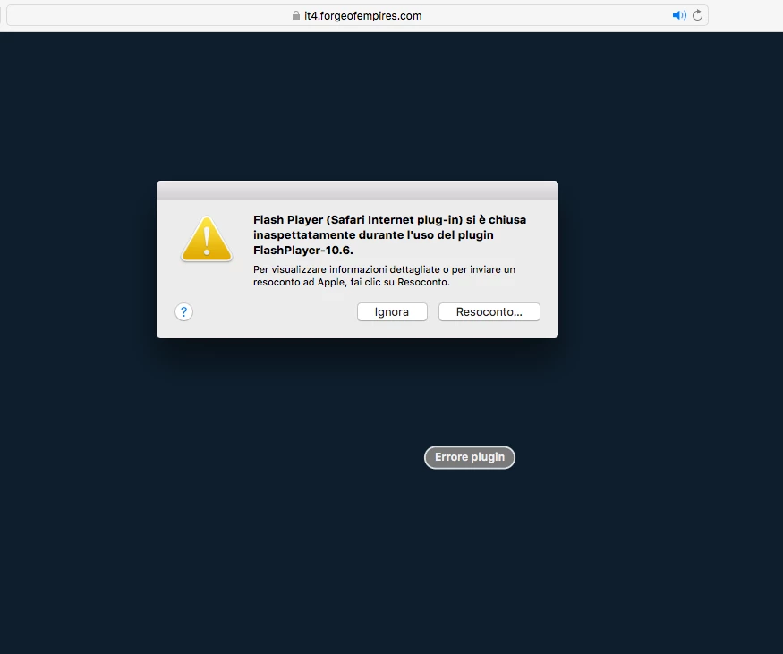Un bel giorno , utilizzando Safari per Forge Of Empires, e senza aver fatto nulla di particolare, mi è venuta fuori questa schermata: