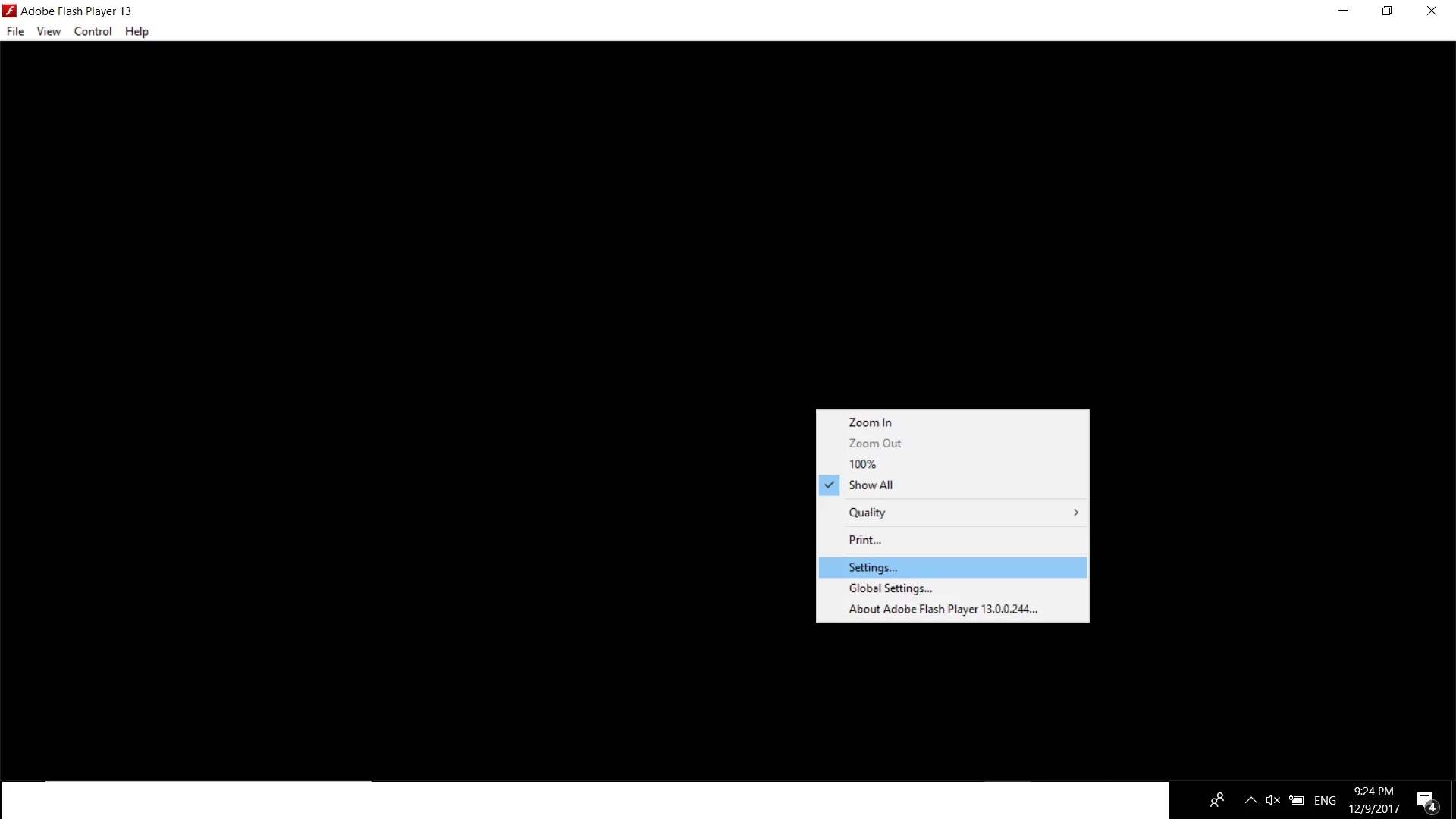 I use Flash Player 13 and whenever I try to change the global settings, it won't come up. I have tried deleting it and redownloading it as well as restarting my computer but it still won't work.