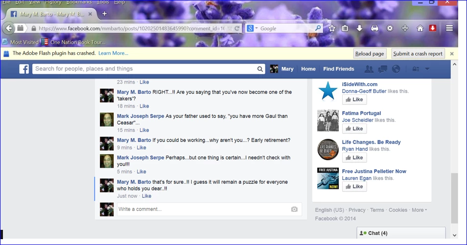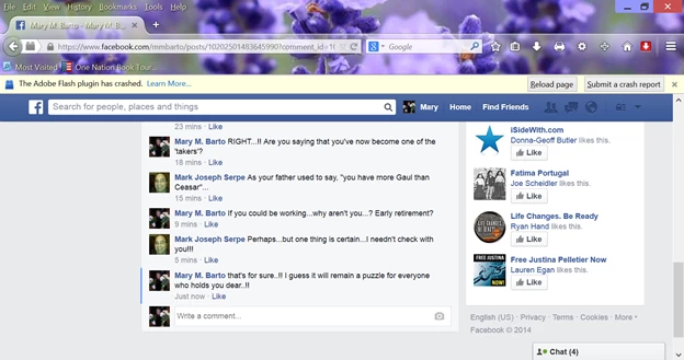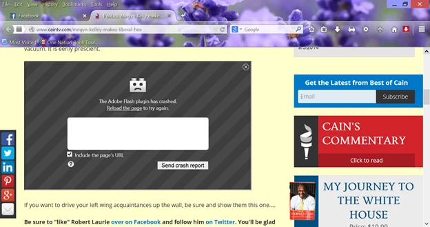 I'm using Flash 14.0.0 and Shock 14.0.0179 with Firefox 32.0. I'm continually getting a 'Reload' or 'Submit Crash report' message. I cannot open a 'video' clip in Facebook at all. If I use IE as my browser...then I can do everything, with no issues. I have 'uninstalled' and 'reinstalled' both Flash and Shock a number of times. I have followed all the steps suggested to validate Flash and Shock, all Plugins are 'active'.