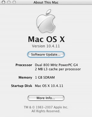 mac os x version 10.4.11 powerpc g4