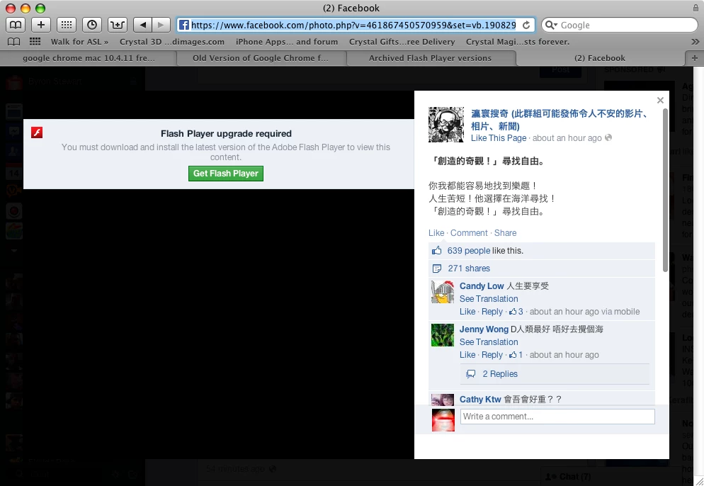Hello my name is Byron Stewart i am full deaf i need your help for that which match for that Adobe flash player because i can't play on video  for example i use facebook or any must new up to 10.5 i have still 10.4.11 won't work play i need your help any one know email me [removed] thanks you have great day