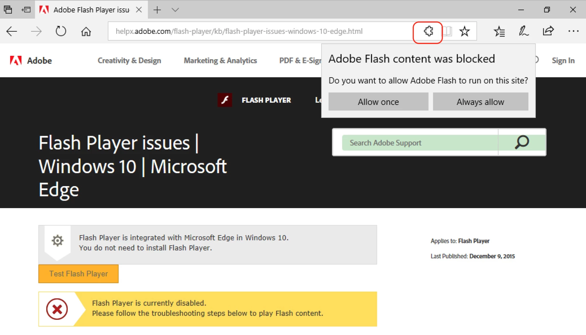 Hey everybody my flash player is disabled and I followed the settings fix but it is on what do I do