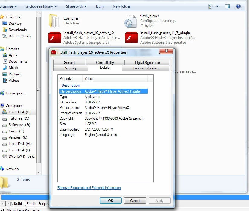 Look i take a screenshot and see details of two different flash player installer version 10 and 11 , and i cant use version 11 cause swfkit cant find flash player and install it from this package