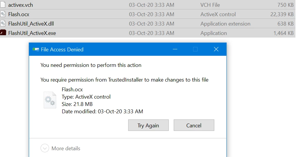 I tried to Delete thos files but gives an error- 'You require permission from TrustedInstaller to make changes to the file.' Screenshot is attached below