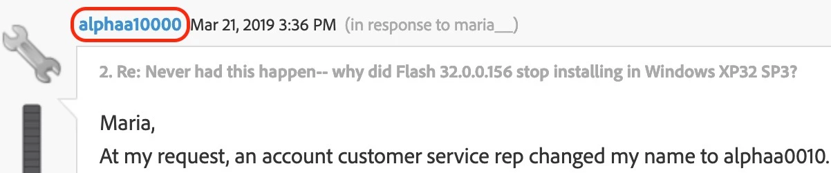 Using FireFox 52.09.0 (ESR), Adobe Flash 32.0.0.156 stopped installing an update in Windows XP32, SP3