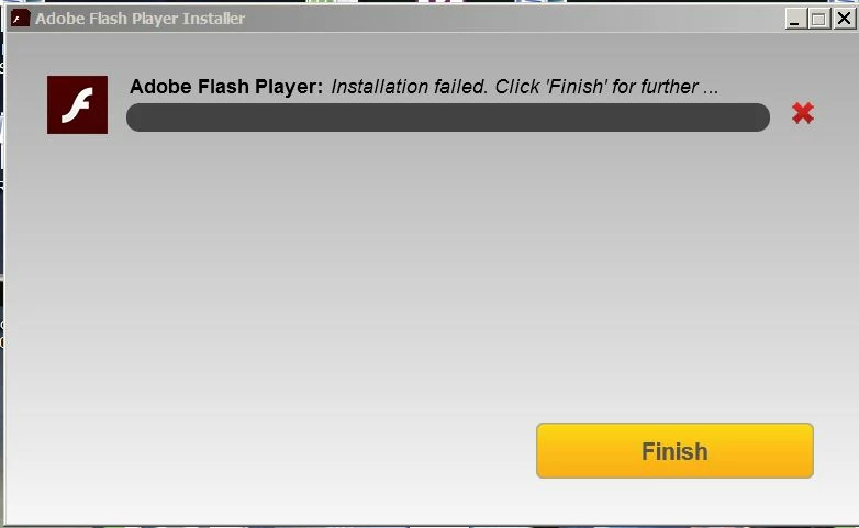 "Adobe Flash Player: Installing" appeared, then "Installation failed. Click "Finish"for further..." (see scrnshot02.jpg).