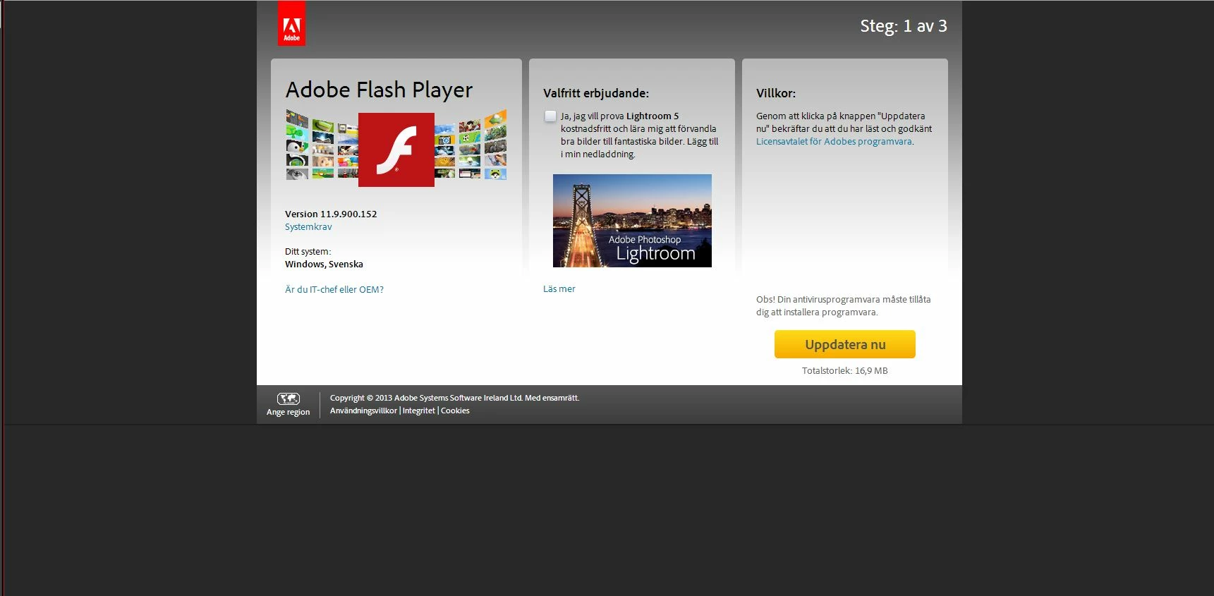 If you read these forums you will see this issue quite a lot. The response from Adobe is that there will always be an option during installation to opt out of the installation of McAfee Plus. Adobe even provided screen shots to prove this fact. Well today I was finally given the option to update my Flash Plug In when I booted my computer. Since I was aware of this issue I decided to see for my self if I was given this opt out option during the installation of the latest Flash. So was I given the choice to opt out?