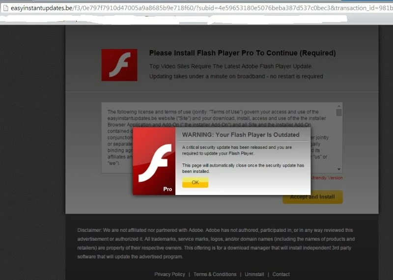 Popup notice to download Flash Player Pro