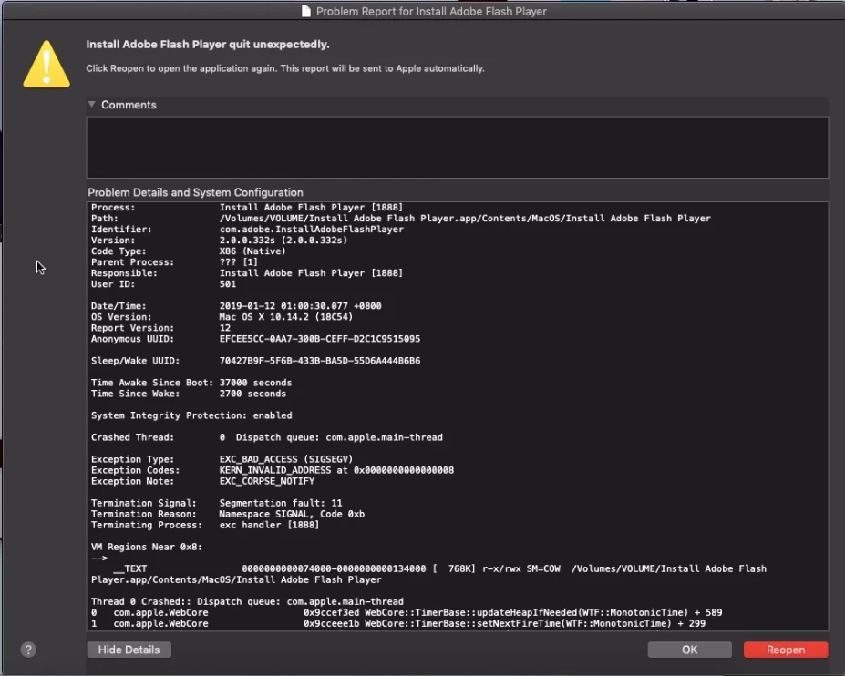 PPAPI online installer crashing on macOS 10.14.2