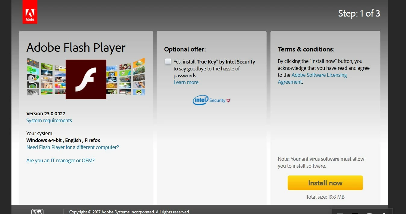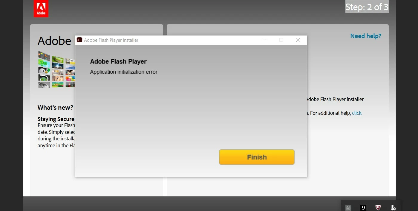 I keep getting 'Application Initialization Error' message when trying to down load Flash Player 25 for firefox on a Windows 10 64 bit