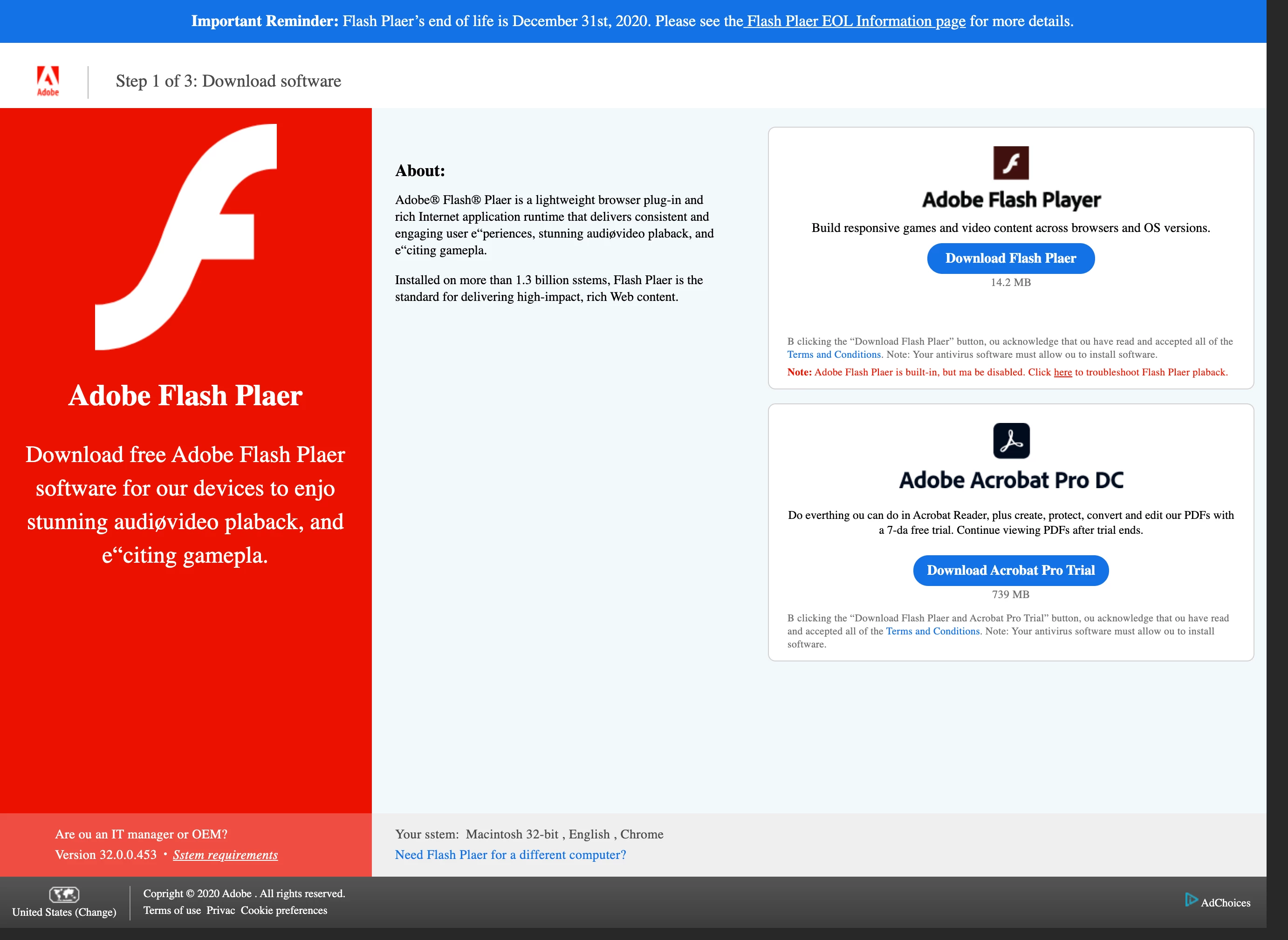 If you've encountered a site offering fake Flash Player downloads, please send a screenshot and a fully copy of the URL(s) involved to phishing@adobe.com.