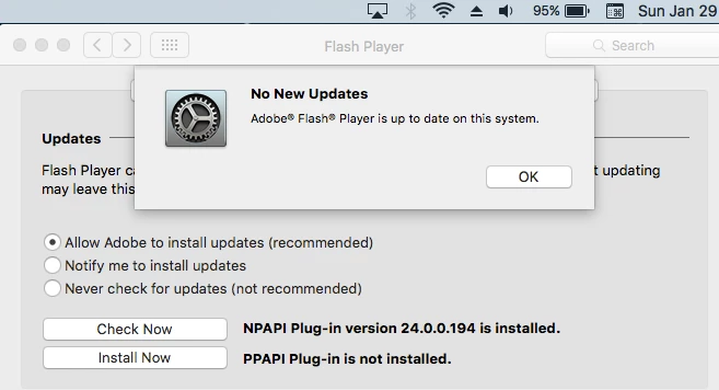 But OSX System Preferences> Flash Player says I'm up to date -- what gives?