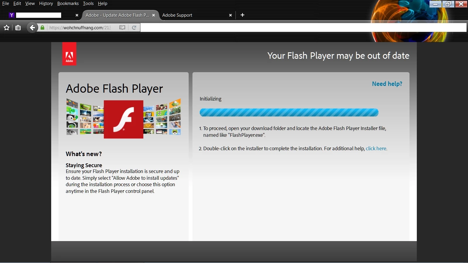 suspicious update popup for flash player