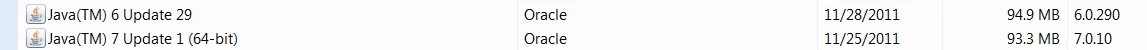 Oracle released Java 1.6.0_30 today. You can update via Windows CP. Details at: http://isc.sans.org/diary/Java+6u30+released/12187
