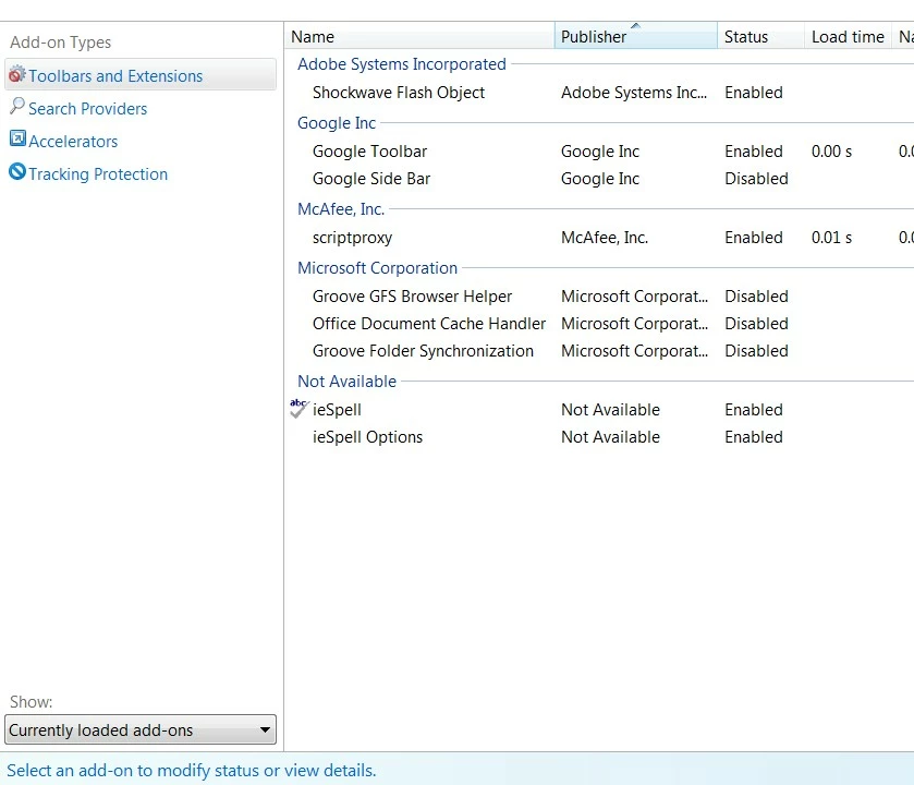 I have a peculiar problem. I have installed and tested the newest version of flash player. When I open the "manage add on" tab in IE9 and load all add ons, the flash player and shockwave player show up. When I open the currently loaded add ons, the flash player does not show up, only shockwave player shows up.